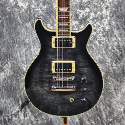• Material: Solid mahogany body with a quilted maple veneer top.