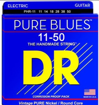 Pure Blues electric guitar strings from DR Strings are designed with pure nickel wrap wire, roundwound upon round cores. While this is a slow, expensive method of string making, it does produce a guitar string acclaimed for increased sustain, vintage tone, and great low tones for playing rhythm to lead. The extra step of winding pure nickel around a round core give Pure Blues strings a punch that players say they are surprised to get in a vintage string.