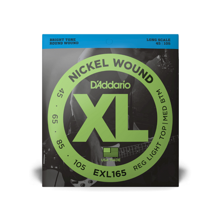 EXL165 is a popular D'Addario hybrid bass set combining the high strings from an EXL170 (.45 and .60) with the low strings from an EXL160 (.85 and .105). This set is optimal for players looking for the ideal combination of a comfortable playing tension with distinctive brightness and booming, tight lows. Fits basses with a string scale length of up to 36 1/4 inches.