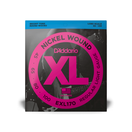 EXL170, D'Addario's best-selling bass set and the standard for most electric basses, offers the ideal combination of bright, booming tone and comfortable feel. The most versatile and universally appealing set for all playing styles. Fits long scale basses with a string scale length of up to 36 1/4 inches.